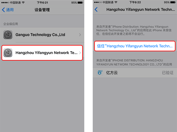 安装提示 1、请在手机Safari中打开,依次点击提示中的“打开”、“安装”,将自动开始安装到手机桌面; 2、安装完成后,首次打开App需要信任来自ZJU CLOUD的描述文件。请前往设置-通用-设备管理,按下图操作。也可以点击下方的“去信任”按钮快速跳转到“设备管理” 去信任